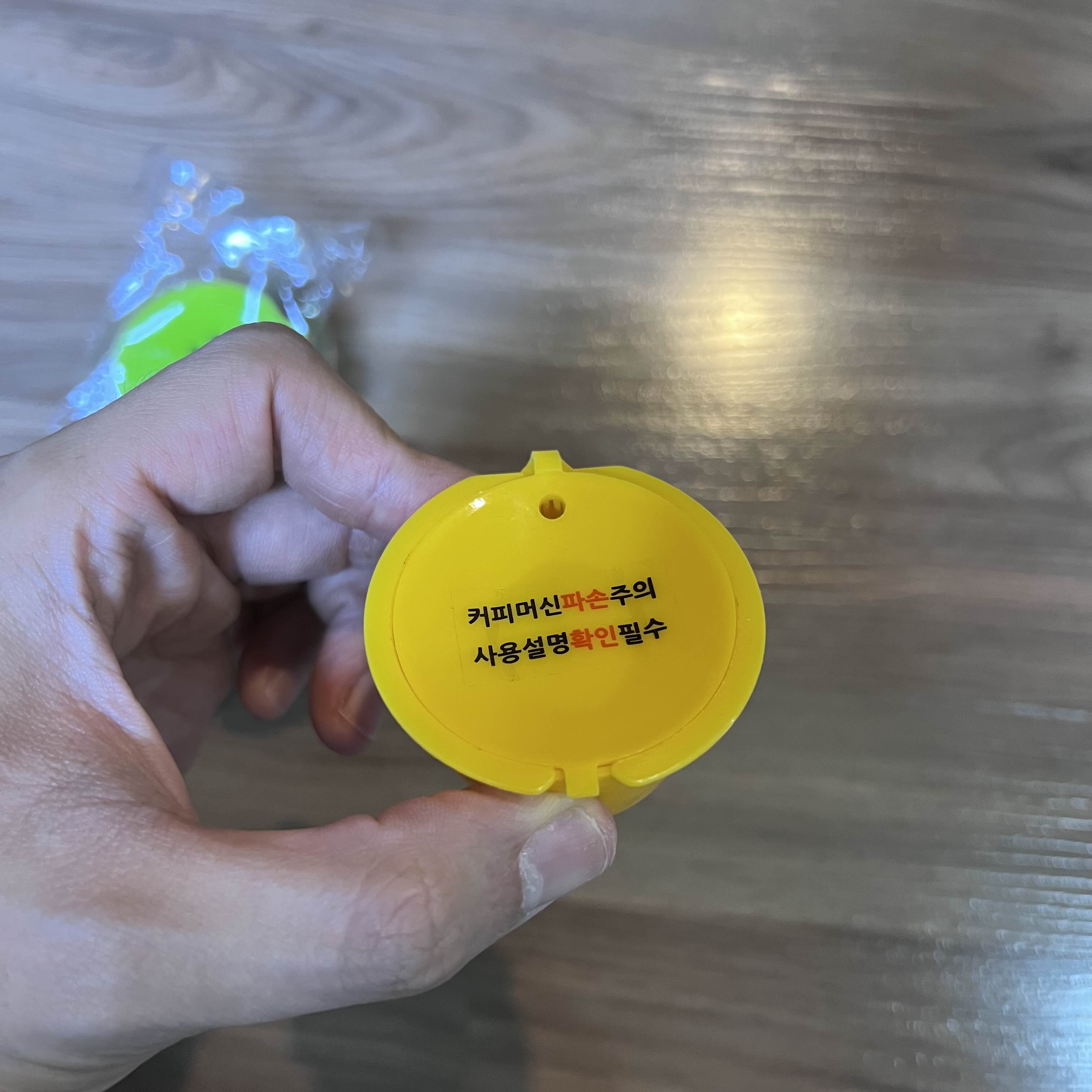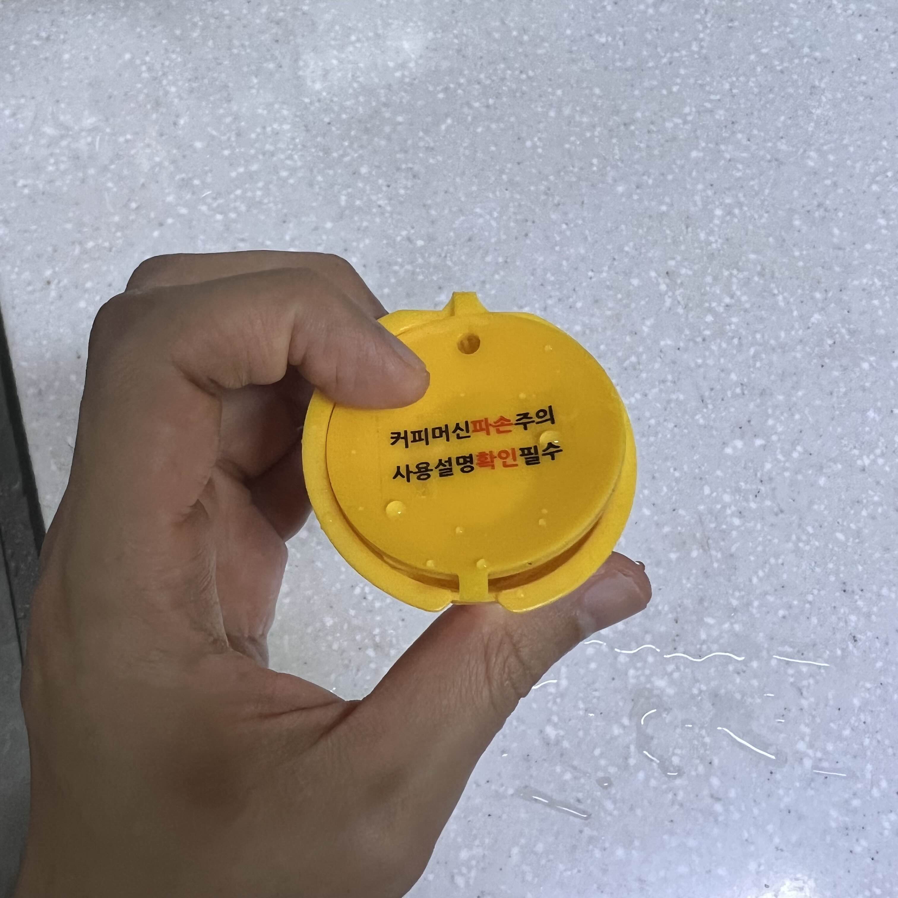 뚜껑에 보시면 커피머신 파손주의라고 쓰여 있는데요