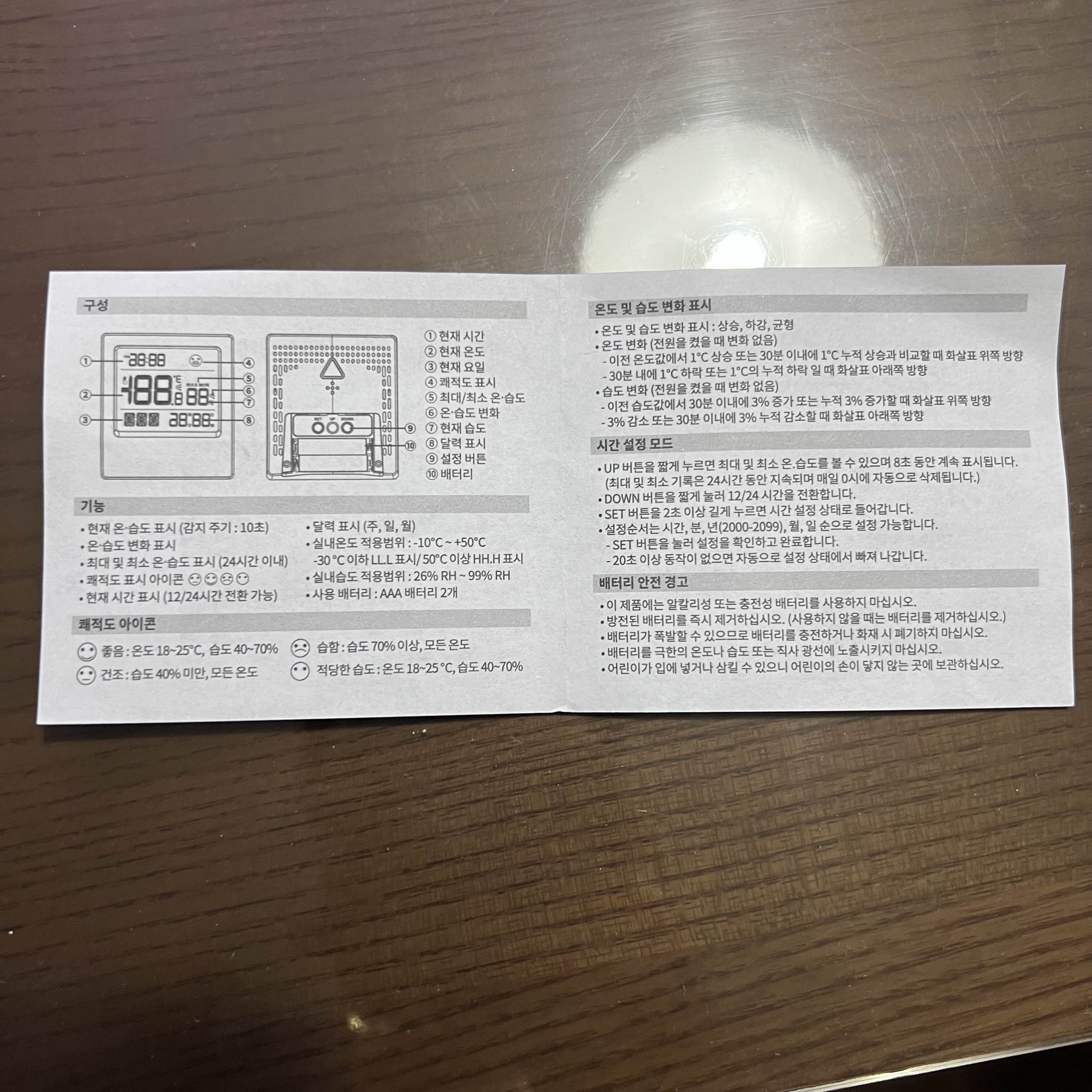 aaa형 건전지 2개로 구동되는 온습도계이고요