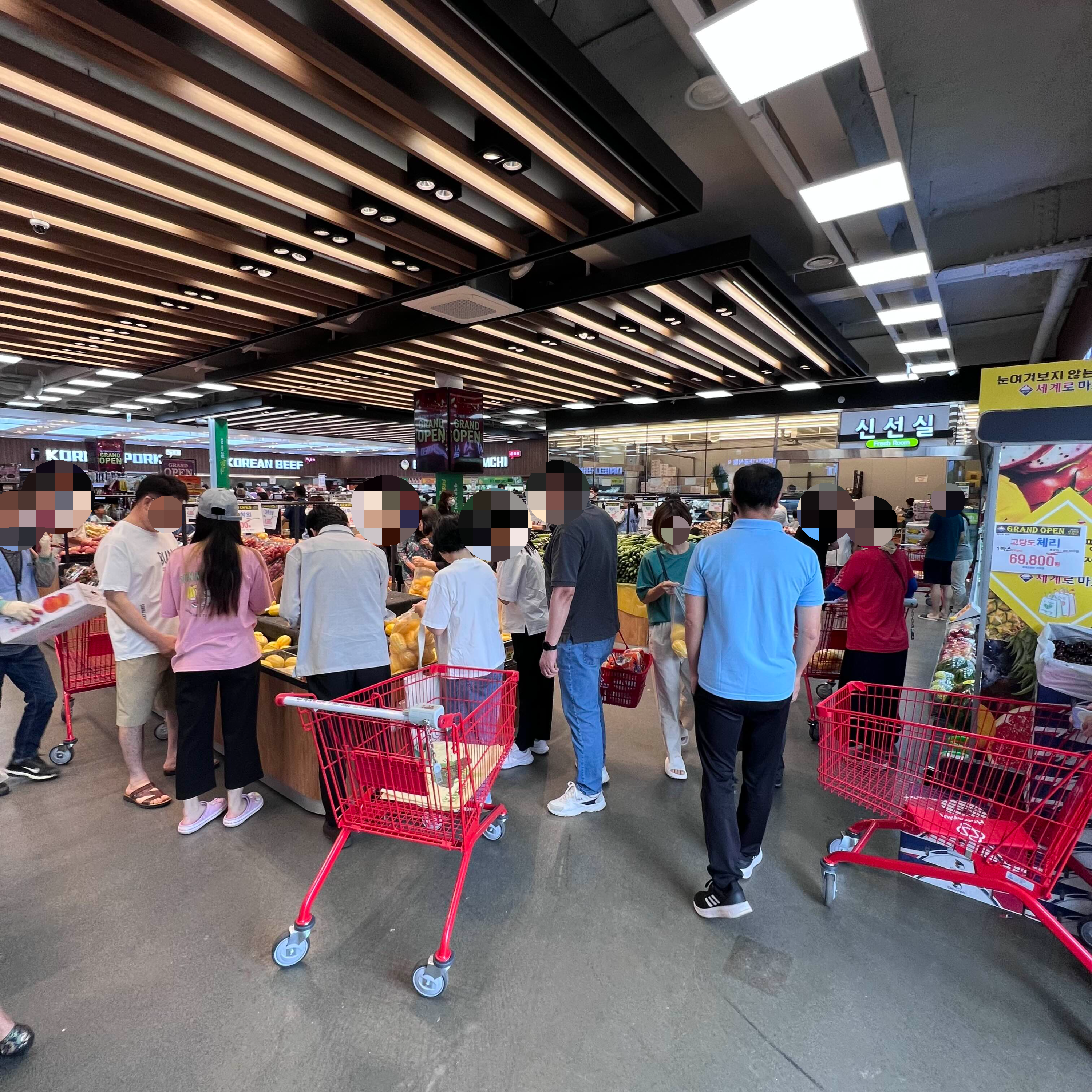 매장에 줄이 길게 늘어서 있는데요. 그게 다 돼지고기